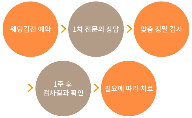 웨딩검진은 결혼 전 성기능검사와 다양한 검진 등을 통해 문제를 찾고 치료하여 보다 행복한 결혼생활을 할 수 있게 만듭니다.